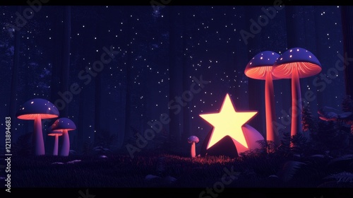 Canvas Prints a star is lit up in a forest with mushrooms surrounding it - Canvas Prints Canvas Prints a star is lit up in a forest with mushrooms surrounding it - Canvas Prints