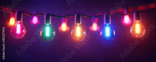 Canvas Prints a string of colorful light bulbs on a dark purple background - Canvas Prints Canvas Prints a string of colorful light bulbs on a dark purple background - Canvas Prints