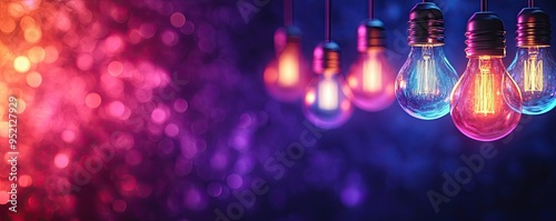 Canvas Prints a string of colorful light bulbs on a dark purple background - Canvas Prints Canvas Prints a string of colorful light bulbs on a dark purple background - Canvas Prints