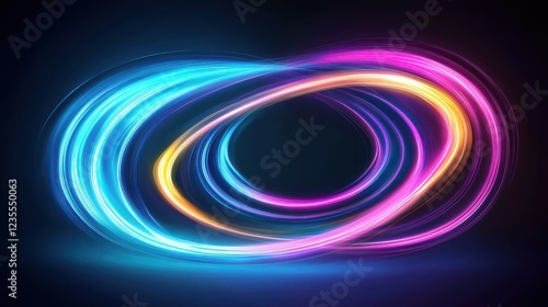 The watermark will not be included on Canvas Print.: A swirling design of neon light trails in various shades, forming a dynamic color wheel -