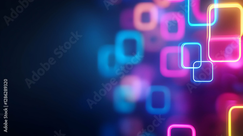 The watermark will not be included on Canvas Print.: A vibrant abstract background featuring geometric shapes illuminated by colorful neon lights, perfec
