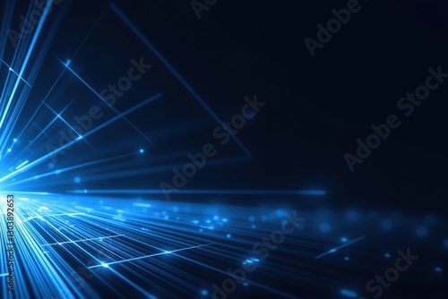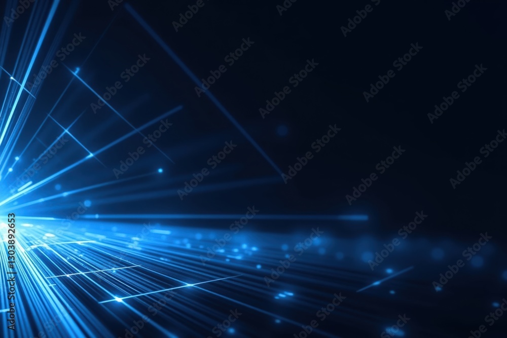 Canvas Print : A vibrant display of electric blue light rays and particles emitting from the center in a dark backg