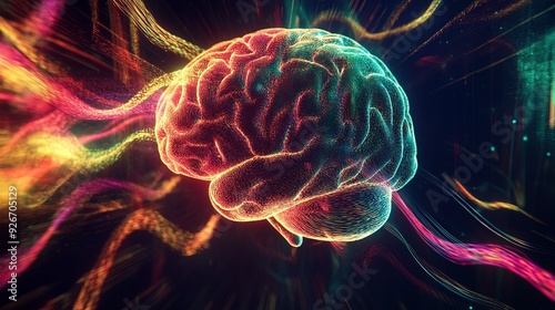 Canvas Prints a vibrant graphic of a human brain with intertwining sound waves emanating from it, representing the - Canvas Prints Canvas Prints a vibrant graphic of a human brain with intertwining sound waves emanating from it, representing the - Canvas Prints