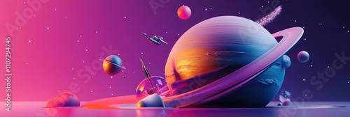Canvas Prints a vibrant space scene featuring a colorful planet with rings and various celestial bodies. - Canvas Prints Canvas Prints a vibrant space scene featuring a colorful planet with rings and various celestial bodies. - Canvas Prints