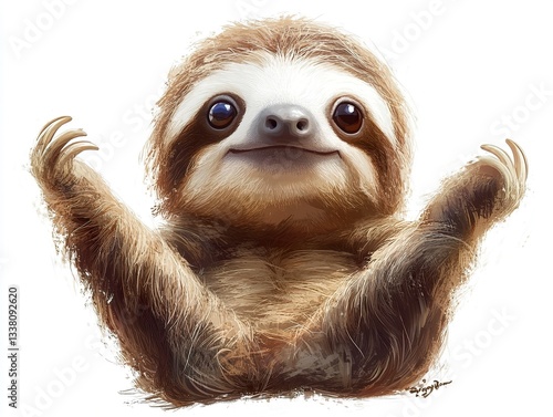 The watermark will not be included on Canvas Print.: A whimsical vector sloth sitting with tiny arms outstretched, its big eyes and soft shapes making it