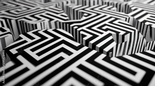The watermark will not be included on Canvas Print.: Abstract 3d black and white maze pattern -
