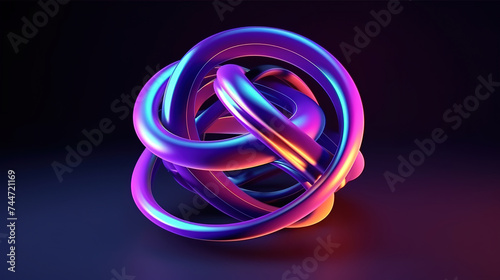 Canvas Print : Abstract 3d graphic object with glow on dark purple background