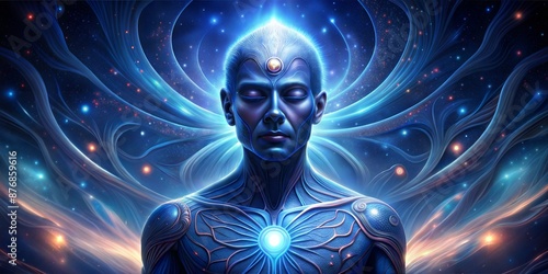 The watermark will not be included on Canvas Print.: Abstract 3d rendering of a man in a dark blue and white