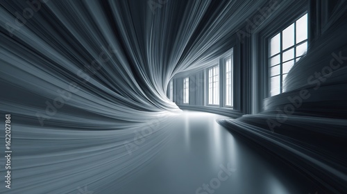 The watermark will not be included on Canvas Print.: Abstract architectural interior with curved walls and windows, creating a futuristic hallway with sm