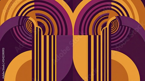 The watermark will not be included on Canvas Print.: Abstract art-deco vector graphic with circles, lines and bold colors for posters and website headers