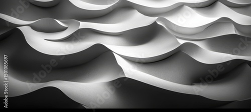 The watermark will not be included on Canvas Print.: Abstract background of delicate wavy shapes in black and white forming a fluid design