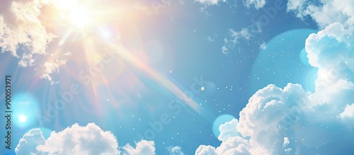 The watermark will not be included on Canvas Print.: Abstract background showing a sunny blue sky with fluffy white clouds and light flare ideal for addi