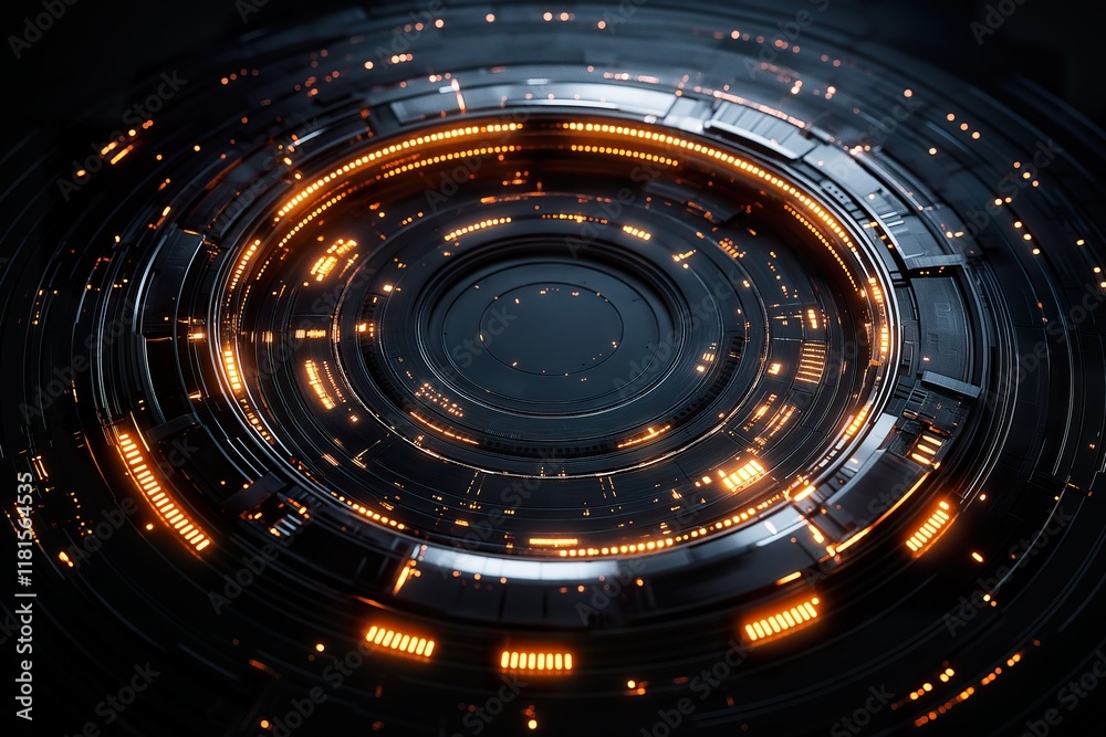 The watermark will not be included on Canvas Print.: Abstract background with glowing circles - futuristic technology background - 3d illustration -