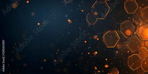 The watermark will not be included on Canvas Print.: Abstract background with glowing hexagons, in a black and blue color scheme