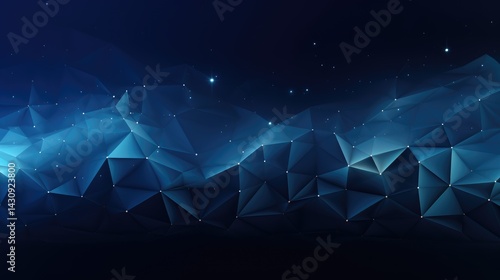 The watermark will not be included on Canvas Print.: Abstract background with glowing low poly shapes and stars on a dark blue gradient - abstract futuris