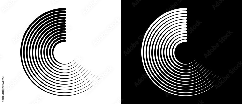 The watermark will not be included on Canvas Print.: Abstract background with lines in circle - art design spiral as logo or icon - a black figure on a whi