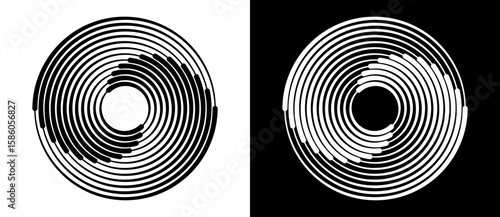 The watermark will not be included on Canvas Print.: Abstract background with lines in circle - art design spiral as logo or icon - a black figure on a whi