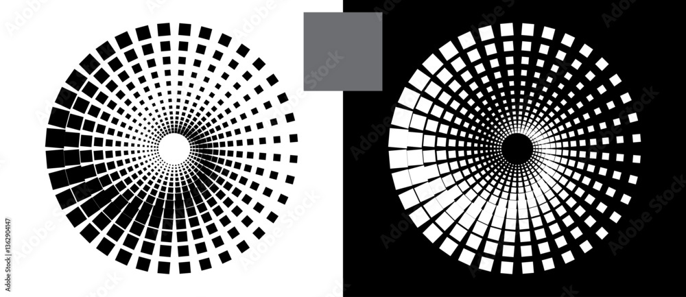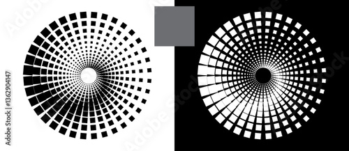 The watermark will not be included on Canvas Print.: Abstract background with squares in circle - art design spiral as logo or icon - a black figure on a w