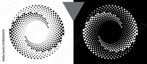 The watermark will not be included on Canvas Print.: Abstract background with triangles in circle - art design spiral as logo or icon - a black figure on a