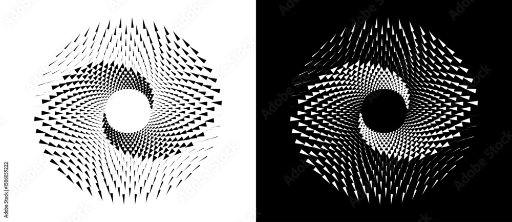 The watermark will not be included on Canvas Print.: Abstract background with triangles in circle - art design spiral as logo or icon - a black figure on a