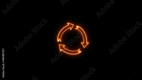The watermark will not be included on Canvas Print.: Abstract beautiful neon refresh and recycle icon animation background - neon arrow icon background -
