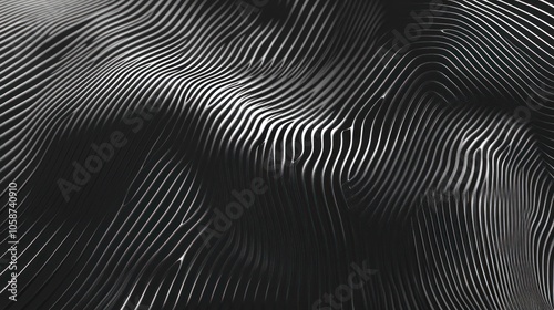 The watermark will not be included on Canvas Print.: Abstract black and white striped textured background with wavy lines -