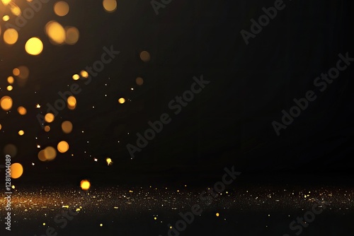 Canvas Prints abstract black background with golden glitter and bokeh lights, ideal for presentations or design.