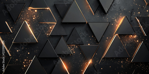 The watermark will not be included on Canvas Print.: Abstract black geometric background with glowing triangles
