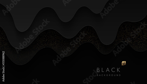 The watermark will not be included on Canvas Print.: Abstract black wavy shape overlap layers with glowing golden glitter dots on dark background - luxury