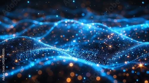 The watermark will not be included on Canvas Print.: Abstract blue and gold glowing particle wave -