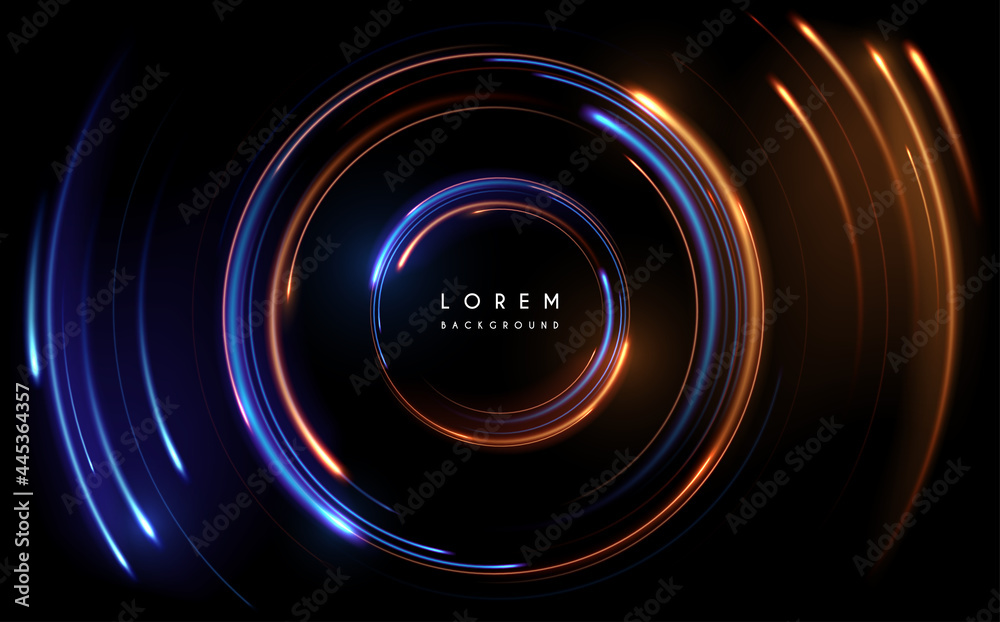 Canvas Print : Abstract blue and yellow circle lights with motion effect