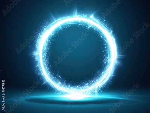 Abstract blue background with a white circular glow, a glowing energy portal generative aiCanvas Print