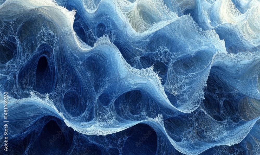 The watermark will not be included on Canvas Print.: Abstract blue background with flowing wave and veil texture, soft gradient design for modern digital