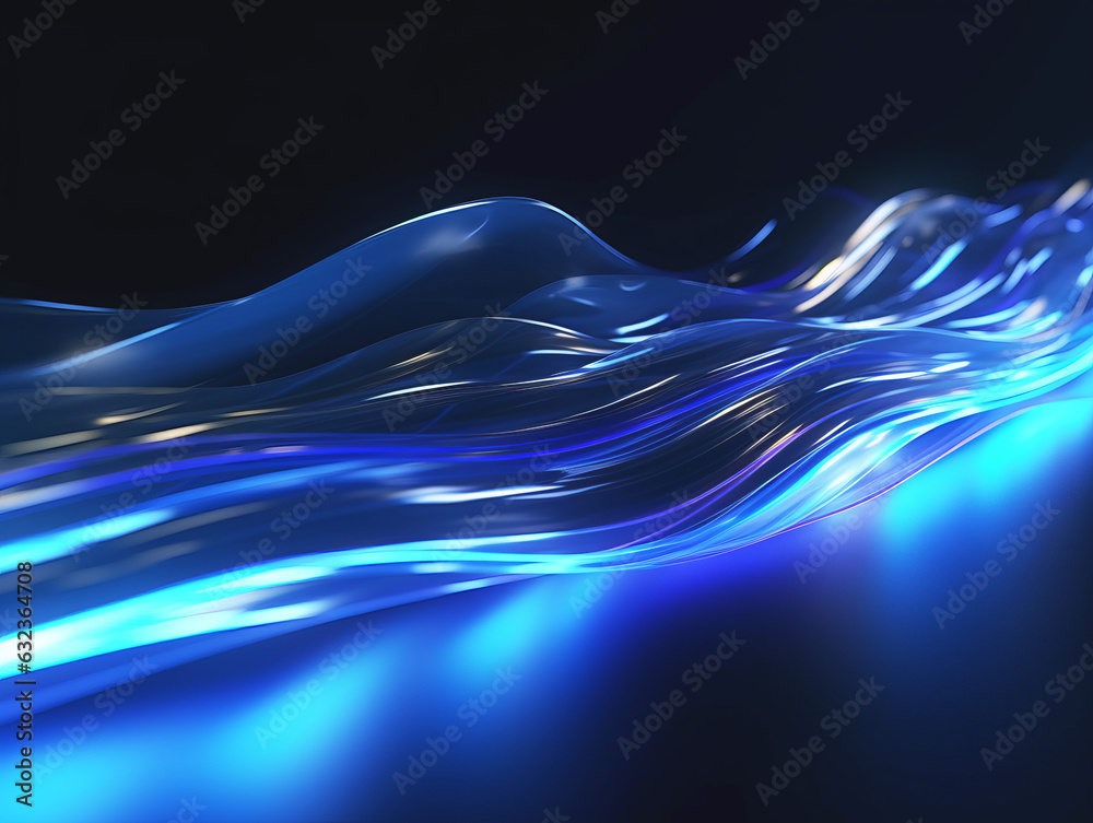 The watermark will not be included on Canvas Print.: Abstract blue background with smooth lines and waves - generative ai