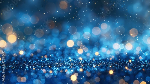 The watermark will not be included on Canvas Print.: Abstract blue bokeh background with defocused glitter, blurred shimmering lights, and sparkling effe