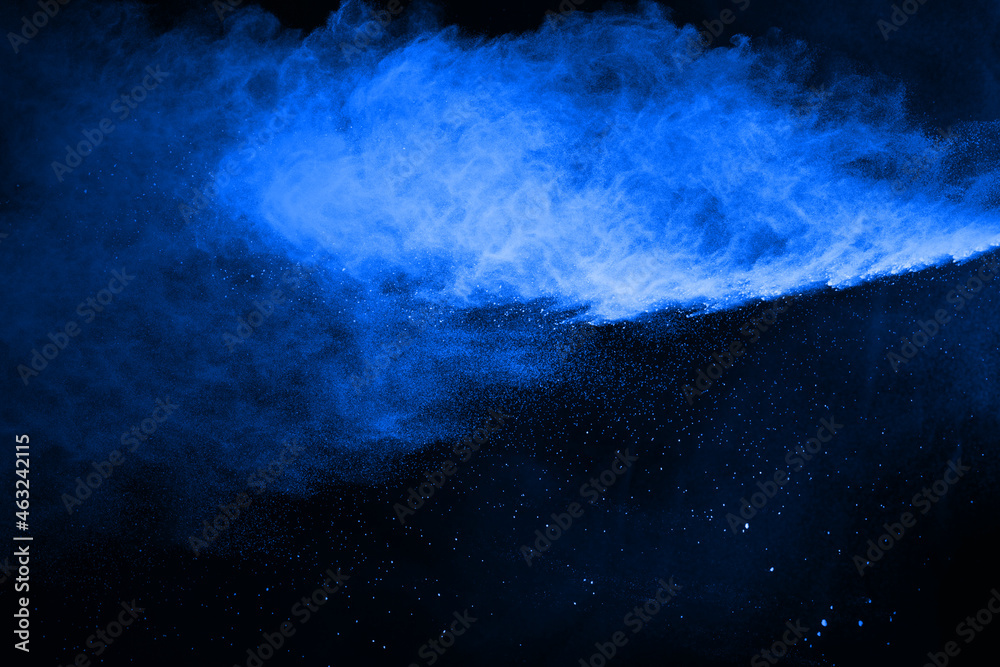 Abstract blue powder splatted background,freeze motion of color powder exploding/throwing color powdCanvas Print