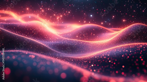 The watermark will not be included on Canvas Print.: Abstract bokeh or stream in 3d art, representing the future of light travel or particle of metaverse