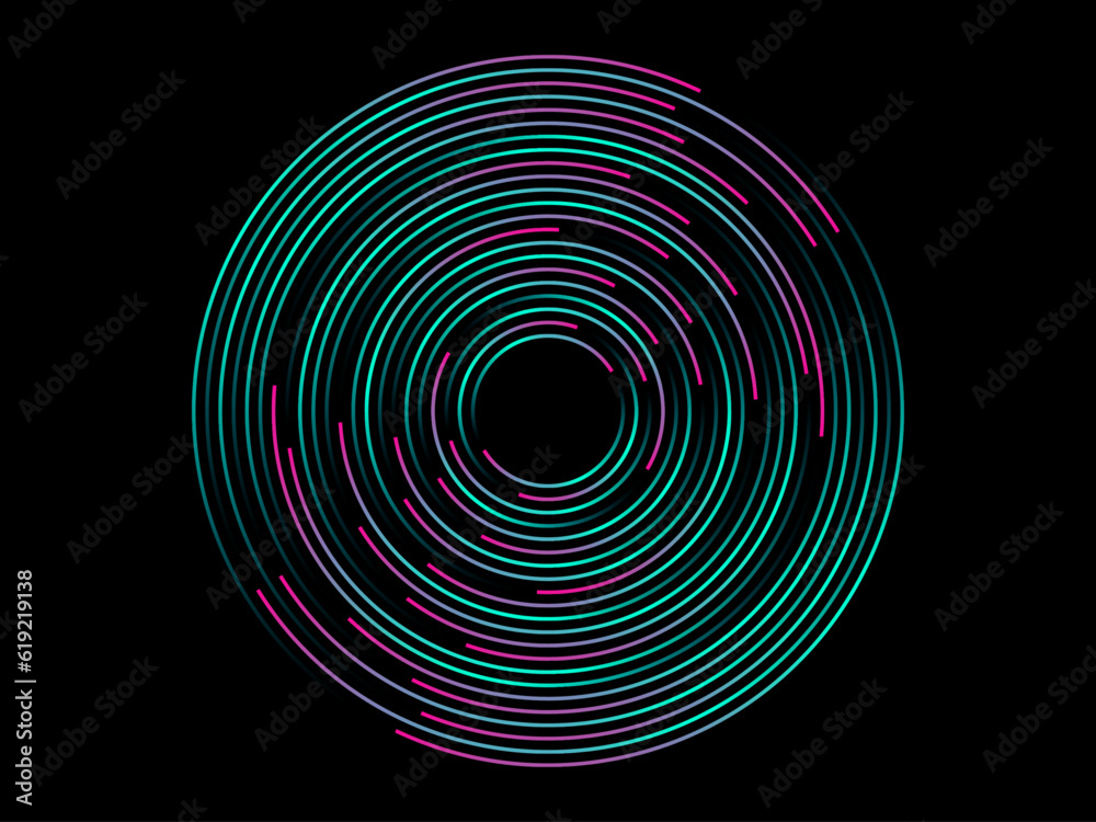 Canvas Prints abstract circle line pattern spin glitchy green light isolated on black background in the concept of