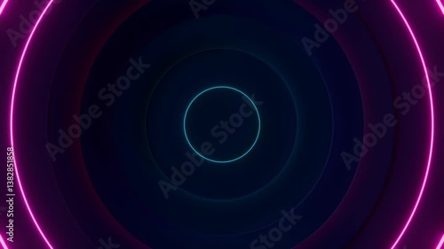 The watermark will not be included on Canvas Print.: Abstract colorful glowing circle neon light background video, wallpaper 4k seamless loop motion grap
