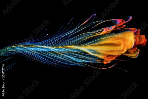 The watermark will not be included on Canvas Print.: Abstract colorful light streaks and particles on black background -