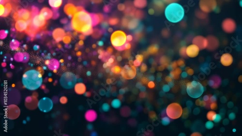 The watermark will not be included on Canvas Print.: Abstract colorful lights blur in a dark background, creating a festive mood