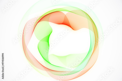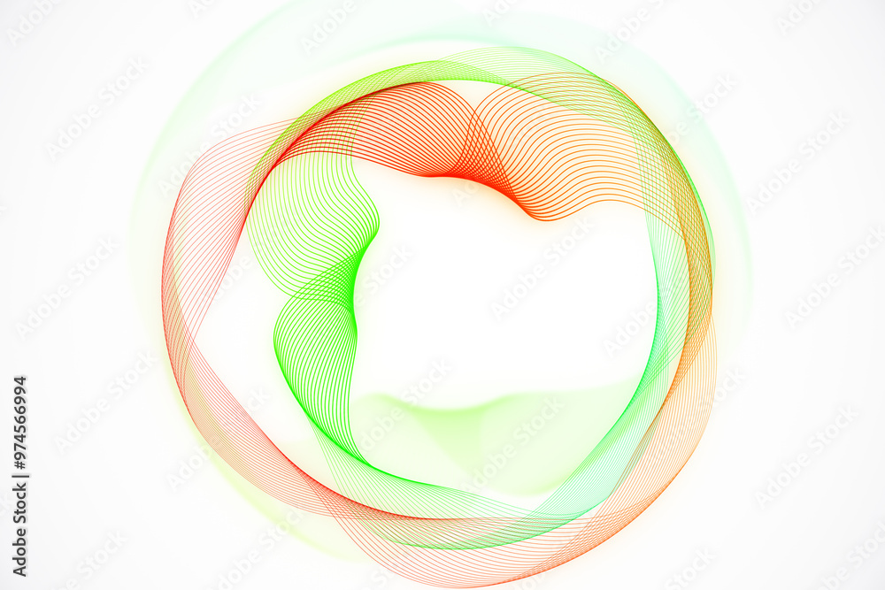 The watermark will not be included on Canvas Print.: Abstract colorful wave lines in red and green on a clean white background - concept of modern design