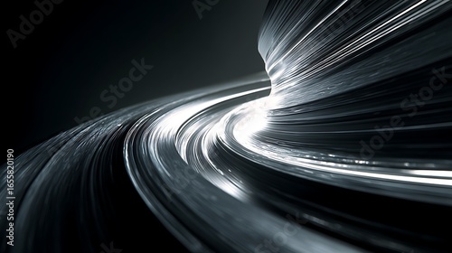 The watermark will not be included on Canvas Print.: Abstract curve with light and shadow in dark background, a modern and futuristic design with shiny m