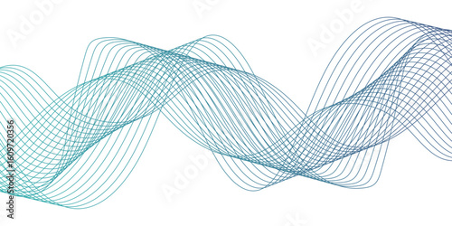 The watermark will not be included on Canvas Print.: Abstract curvy line art wavy flowing dynamicsound, wave, wind, information flow - twisted curve lines