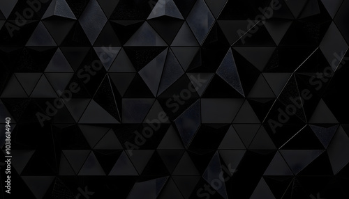 The watermark will not be included on Canvas Print.: Abstract dark black triangular mosaic tile wallpaper texture with geometric fluted triangles backgro