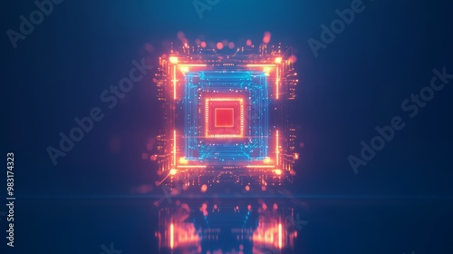 The watermark will not be included on Canvas Print.: Abstract digital cube in neon lights