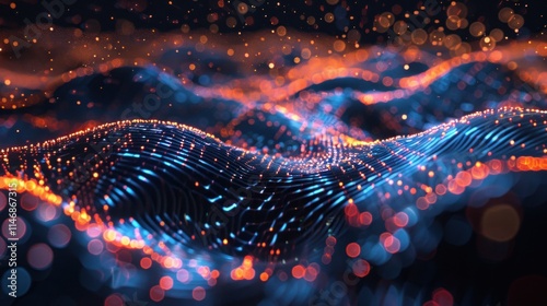 The watermark will not be included on Canvas Print.: Abstract digital landscape: waves of light and data