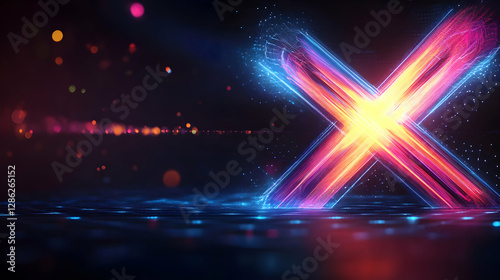 The watermark will not be included on Canvas Print.: Abstract digital lights in vibrant colors create an eye-catching visual - perfect for tech and futuri