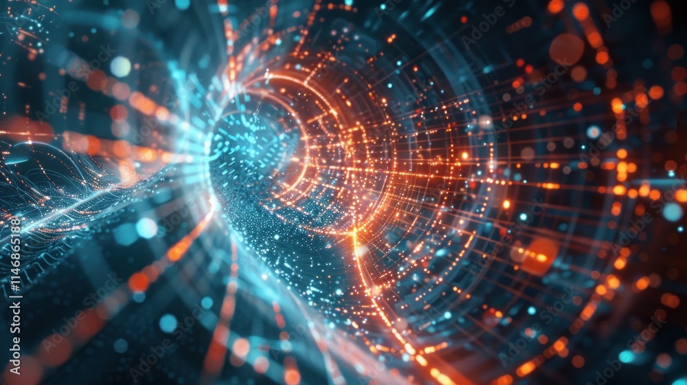 The watermark will not be included on Canvas Print.: Abstract digital tunnel: a symphony of light and data