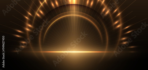 The watermark will not be included on Canvas Print.: Abstract elegant gold glowing line with lighting effect sparkle on black background -